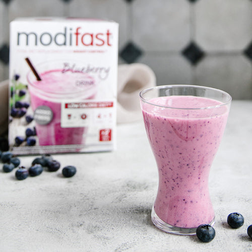 Skummjölkspulver, fullständigt raffinerad sojaolja, mjölkprotein, veteprotein, förtjockningsmedel (cellulosagummi), havrefiber, glukossirap, mineraler (kalium, magnesium, järn, zink, koppar, mangan, molybden, jod, selen), blåbärsarom (2,3 %), yoghurtarom (mjölk), cikoriarotfiber (inulin), maltodextrin, stärkelse, antioxidationsmedel (citronsyra), koncentrat av rödbetsjuice, torkade blåbär (0,8 %), kolin, koncentrerade mjölkmineraler, vitaminer (C, E, niacin, A, pantotensyra, D, B6, B12, K, tiamin, riboflavin, folsyra, biotin), sötningsmedel (acesulfam K, sukralos), emulgeringsmedel (solroslecitin).
