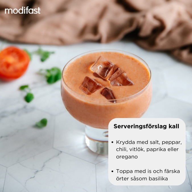Skummjölkspulver, veteprotein, mjölkprotein, torkade tomater (13,3 %), akaciafiber,