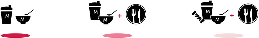 Nu ska du lägga till ytterligare en matmåltid och de fyra sista veckorna av Modifast-metoden äter du exempelvis en vanlig frukost på morgonen samt ytterligare en matmåltid. Ett huvudmål, lunchen eller middagen beroende på vad som passar dig bäst, samt mellanmål byter du alltså fortfarande ut mot totalt 2 påsar Modifast LCD. Nu när du bara byter ut enstaka måltider kan du också välja att använda Modifast måltidsersättningar, bars eller färdigblandad dryck (Ready to drink), istället för påsarna om du så föredrar.